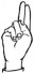 На ћирилици написано ДАВИД БЕЛЕНЗАДА састоји се из 14 слова [?]. Исписано ћириличном једноручном азбуком за глувонеме: